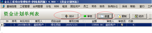 【資金計劃單】在菜單【二次開發】-【資金計劃設置】中,主要包括了【新建】資金計劃單和資金計劃單的【統計】功能。