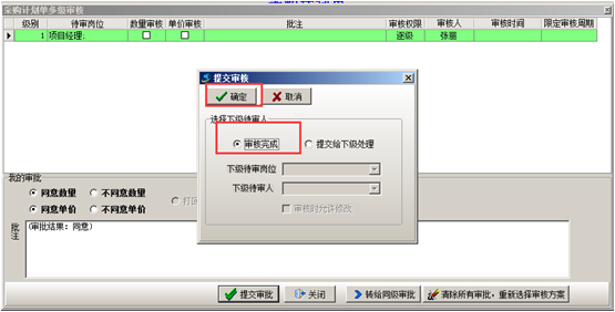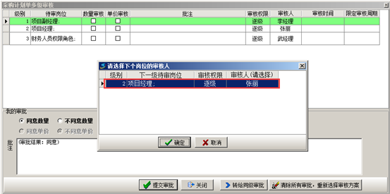 單據(jù)的創(chuàng)建人在發(fā)起審核的時候選擇“自定義審核”,確定之后選擇下一級審核人,如圖;