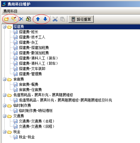 使用左上角圖標(biāo)按鈕,創(chuàng)建費(fèi)用科目,第一個按鈕的意思是新建平級科目,第二個按鈕是新建子級科目,按上下的箭頭可以調(diào)整上下位置,后面剪刀與文件代表的是復(fù)制與粘貼。