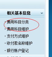 在工程項目管理軟件財務(wù)模塊右側(cè)相關(guān)基礎(chǔ)信息或者基礎(chǔ)信息菜單中,完善費(fèi)用科目分類及費(fèi)用科目維護(hù)。