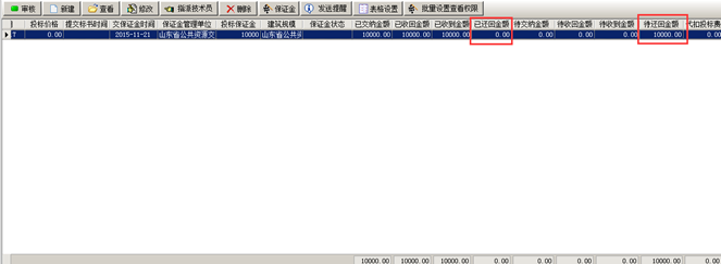 單據創建完成,系統在“還回金額”中扣除【代扣投標費】。如圖: