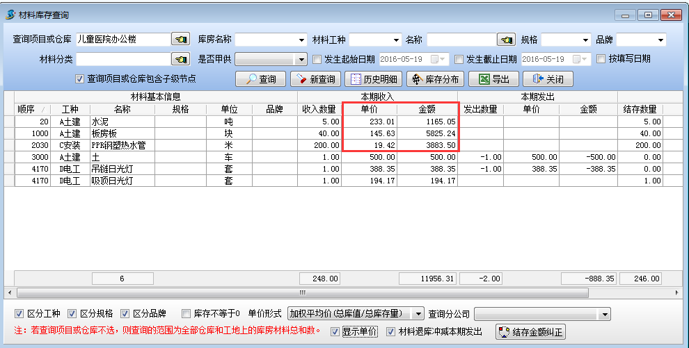 ⑴.庫存查詢和用量查詢以不含稅單價和金額統計。如下圖: