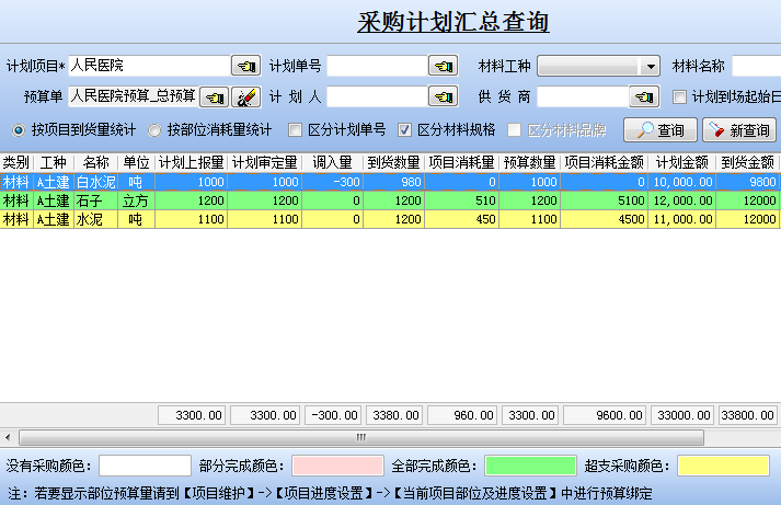 如何在金石工程項目管理軟件中查看材料的“計劃上報量”、“計劃審定量”、“調(diào)入量”、“到貨數(shù)量、項目消耗量”、“預算數(shù)量”