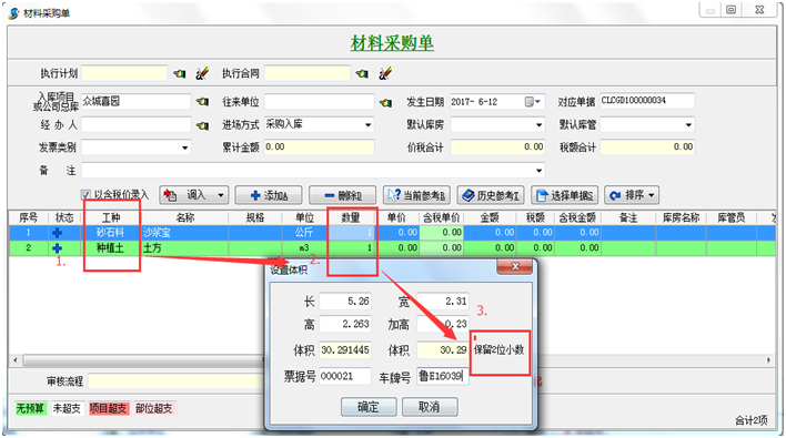 工程項(xiàng)目管理軟件對(duì)于工地來(lái)的土方或砂石料以車(chē)的長(zhǎng)寬高來(lái)算體積量,我可以以下方法處理。