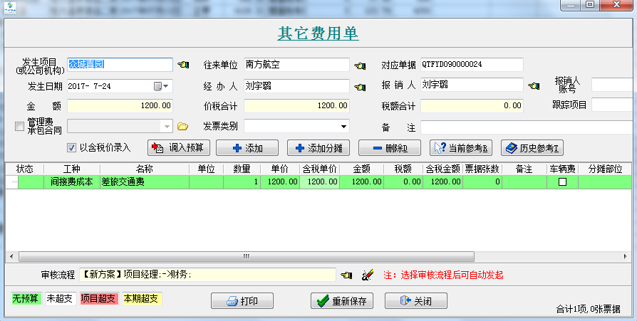 3、以其他費用的報銷為例,先填寫一張【其他費用單】(如果是材料采購或外包人工單等單據類似于其他費用單)