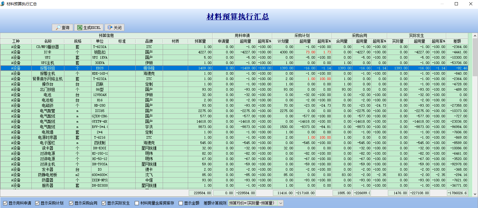 材料預(yù)算執(zhí)行匯總