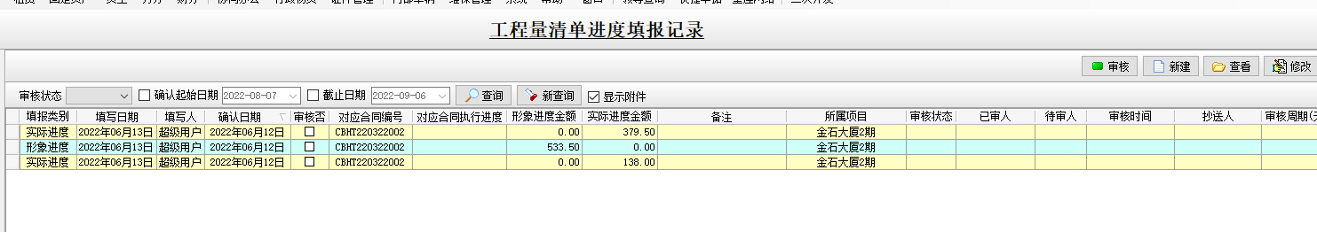 金石工程管理軟件新增形象進度金額、實際進度金額功能